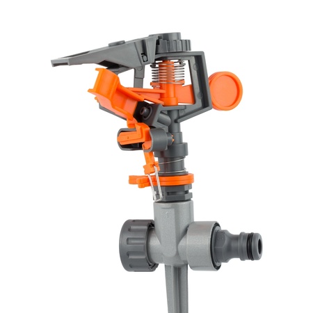 Дощувач імпульсний на металевому кілочку (ABS+AL) FLORA (5013234) призначений для секторно-кругового поливу присадибних ділянок, городів, клумб, газонів і т.д.