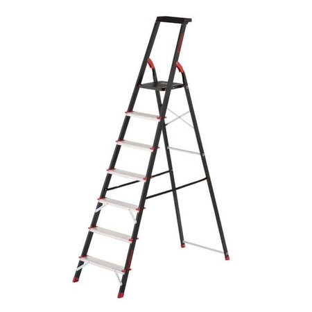 Стрем'янка виготовлена з міцного сталевого профілю з алюмінієвими сходинами. Рифлені сходини не дозволять ковзати нозі та гарантують безпечний підйом, а також зручне положення під час роботи. Стрем'янка відповідає європейському стандарту EN 131 і витримує навантаження до 150 кг.