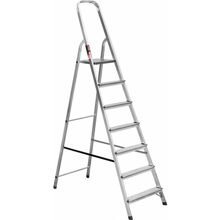Stark SALW507 — алюмінієва драбина заввишки 145 см для побутового та професійного використання з максимальною робочою висотою до 3.5 м. Драбина виготовлена з міцного алюмінієвого профілю 40х20 мм завтовшки 1.2 мм, що забезпечує безпеку користувачеві та дає змогу витримувати до 150 кг. Stark SALW507 складається із 7 алюмінієвих сходинок, які зафіксовані заклепками. Ребриста поверхня сходинки запобігає ковзанню ноги для ще більшої безпеки. Верхній майданчик виготовлений з міцної сталі, він надійно фіксується в розкладеному стані. Зручно розміститися на драбині допомагає опора-ручка, за яку можна триматися, підіймаючись сходами. На ніжках передбачені пластикові накладки, які запобігають пошкодженню поверхні. Для надійної фіксації на ніжках накладки закріплені заклепками. Характеристики: Кількість сходинок: 7 шт Висота від підлоги до платформи: 145 см Висота в складеному стані разом з опорою-ручкою: 221 см Робоча висота: 350 см Stark SALW507 — компактна алюмінієва драбина дасть нагоду швидко прибрати вдома, помити вікна, дістати до верхньої полиці, виконати ремонтні роботи, зібрати урожай або обрізати дерева в саду тощо.