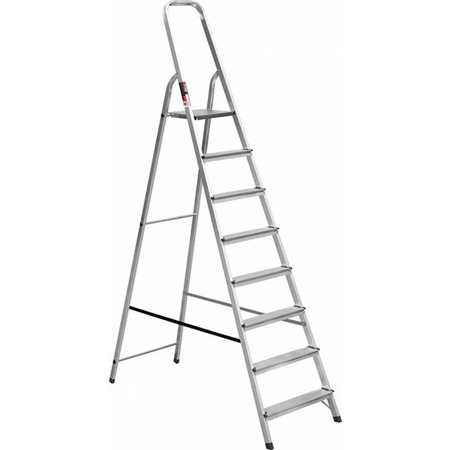 Stark SALW508 — алюмінієва драбина заввишки 166 см для побутового та професійного використання з максимальною робочою висотою до 3.7 м. Драбина виготовлена з міцного алюмінієвого профілю 40х20 мм завтовшки 1.2 мм, що забезпечує безпеку користувачеві та дає змогу витримувати до 150 кг. Stark SALW508 складається з 8 алюмінієвих сходинок, які зафіксовані заклепками. Ребриста поверхня сходинки запобігає ковзанню ноги для ще більшої безпеки. Верхній майданчик виготовлений з міцної сталі, він надійно фіксується в розкладеному стані. Зручно розміститися на драбині допомагає опора-ручка, за яку можна триматися, підіймаючись сходами. На ніжках передбачені пластикові накладки, які запобігають пошкодженню поверхні. Для надійної фіксації на ніжках накладки закріплені заклепками. Характеристики: Кількість сходинок: 8 шт Висота від підлоги до платформи: 166 см Висота в складеному стані разом з опорою-ручкою: 244 см Робоча висота: 370 см Stark SALW508 — компактна алюмінієва драбина дасть нагоду швидко прибрати вдома, помити вікна, дістати до верхньої полиці, виконати ремонтні роботи, зібрати урожай або обрізати дерева в саду тощо.
