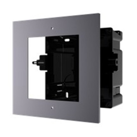 Найнадійніший спосіб встановлення домофонних модулів – використання DS-KD-ACF1. Фірмова рамка для врізного монтажу ідеальний вибір для систем Hikvision. Аксесуар призначений для захисту домофонів від зовнішніх впливів, починаючи від опадів до вандалізму. Рамка являє собою внутрішню конструкцію, що складається із пластикового корпусу та зовнішньої металевої поверхні. Усередину монтується електронний пристрій. Зовнішня частина виготовлена з авіаційного алюмінію. Її важко погнути чи зламати, вона не іржавіє, витримує дію температури та не пропускає вологу. DS-KD-ACF1 монтується у стіну або колону, максимально естетично розташувавши панель для виклику. Екран розташовується одному рівні з рештою стіною.