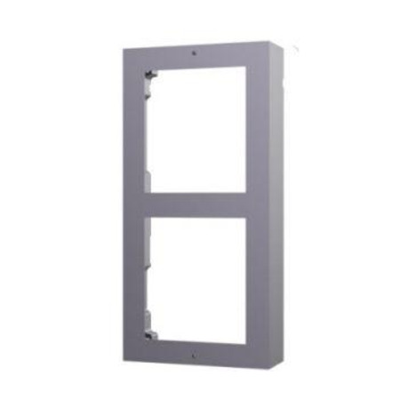 DS-KD-ACW2 - двосекційна декоративна рамка від Hikvision, що використовується для монтажу розширювальних модулів. Сумісна з квадратними панелями викликів багатьох серій. Матеріалом виготовлення аксесуара виступає міцний авіаційний алюміній. Він стійкий до корозії, опадів, пошкоджень та широкого діапазону температур. Успішно експлуатується на вулиці. Використовуючи DS-KD-ACW2, можна естетично та компактно розташувати основний термінал домофона, а також допоміжне розширення для нього у вигляді кнопок для дзвінка, зчитувачів або інших пристроїв. Рамка відрізняється єдиним стилем, що збігається з дизайном обладнання. Приховує внутрішні комунікації. Повністю підходить за розміром до відповідної техніки.