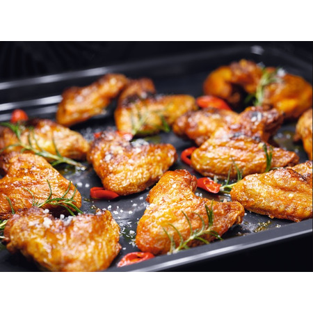 У духовій шафі 600 SurroundCook Oven все буде приготовлено рівномірно — від смаженої курки з хрусткою скоринкою до делікатних безе. Наша духовка забезпечує постійну внутрішню температуру у всій духовій шафі, оскільки вентилятор здійснює циркуляцію повітря та тепла. Тому вам більше не потрібно перевертати страви або регулювати дека.