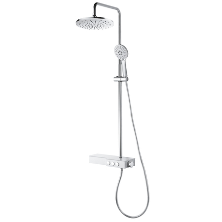 Душова система – це комплект різних сантехнічних пристроїв для установки у ванній кімнаті, в основі якої – змішувач, штанга, верхній душ, ручний душ.