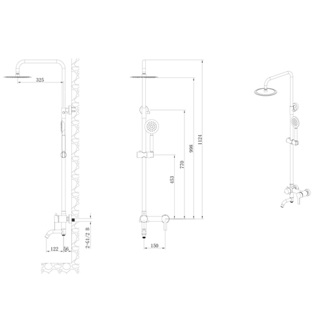 шланг для душу (нержавіюча сталь, 1500 мм), лійка для душу (АВS-пластик, 1 режим), верхній душ (нержавіюча сталь)