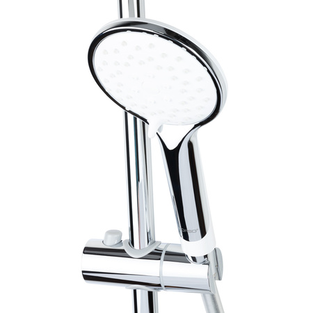 Душова стійка з душовим комплектом - це комплект, що складається з ручної лійки зі шлангом, тримача для неї та штанги-труби (також залежно від моделі може бути верхній душ). Штанга встановлюється паралельно стіні за допомогою металевих або пластикових розпорників і вже безпосередньо до цієї штанги кріпляться всі інші елементи.