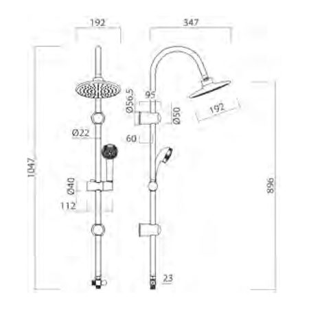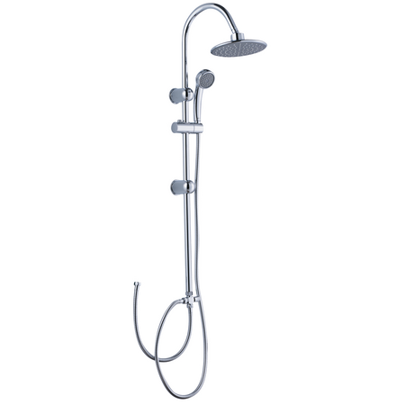 Душова стійка з душовим комплектом - це комплект, що складається з ручної лійки зі шлангом, тримача для неї та штанги-труби (також залежно від моделі може бути верхній душ). Штанга встановлюється паралельно стіні за допомогою металевих або пластикових розпорників і вже безпосередньо до цієї штанги кріпляться всі інші елементи.