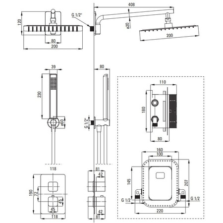 2. **Верхній душ квадратної форми:** Верхній душ у квадратній формі надає сучасний вигляд і рівномірно розподіляє воду для комфортного душу.