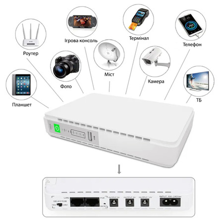 Міні-ДБЖ Для живлення: роутерів, модемів, відеокамер, фотоапаратів, CCTV, телефонів, планшетів, POS-терміналів, моніторів Міні-ДБЖ FrimeCom POE-431P