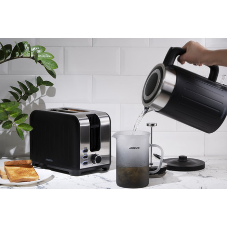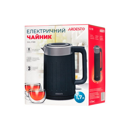 Електрочайник Ardesto EKL-F18B - це стильний та функціональний кухонний прилад, який призначений для швидкого нагрівання води для чаю, кави та інших гарячих напоїв. Цей електрочайник має дизайн у чорному кольорі, який підійде до будь-якого інтер'єру кухні. Об'єм електрочайника Ardesto EKL-F18B становить близько 1,7 літра, що дозволяє швидко підготувати достатню кількість гарячої води для кількох чашок напою. Електрочайник оснащений потужним нагрівальним елементом, завдяки якому вода нагрівається швидко та ефективно. Крім того, він має бездротовий дизайн, який забезпечує зручне використання. Електрочайник Ardesto EKL-F18B має такі корисні функції, як захист від перегріву, автоматичне вимикання після закінчення процесу кип'ятіння та індикатор рівня води. Цей електрочайник буде чудовим доповненням до вашої кухонної техніки і дозволить вам швидко та зручно готувати улюблені гарячі напої.