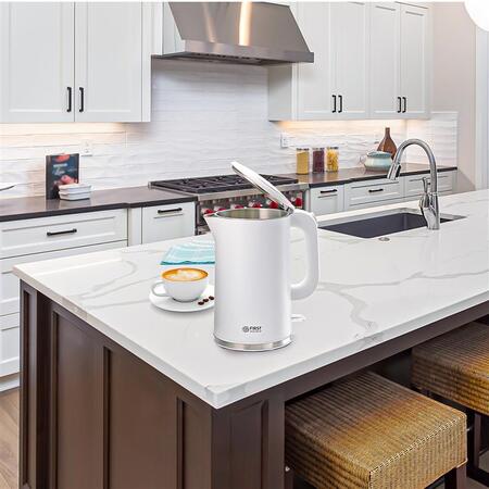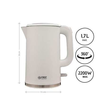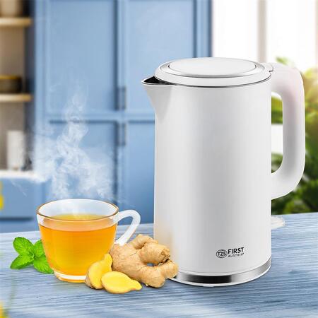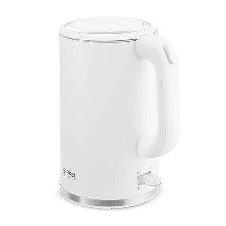 Електрочайник First FA-5407-2WI має дизайн, що відрізняється характерними для сучасних пристроїв рисами: проста циліндрична форма, базова кольорогамма, відсутність акцентованих вигадливих деталей. За рахунок своєї аскетичности техніка ідеально підходить до будь-яких інтер’єрних рішень, а також здатна стати справжньою окрасою вашої кухні.