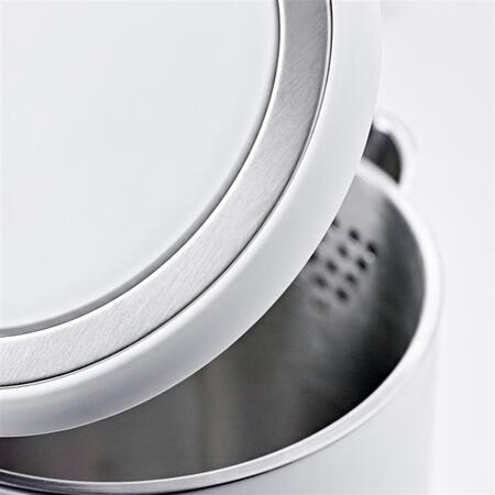 Модель має внутрішній резервуар для води, в який поміщається до 1700 мл. При цьому сам корпус зроблений так, щоб забезпечити повну безпеку користувачеві. Його подвійні стінки (метал всередині, пластик зовні) працюють за принципом термоса, утримуючи температуру всередині, а зовнішню частину залишаючи прохолодною. Так окріп набагато довше буде на потрібному рівні температури, а ви не ризикуєте отримати опік з необережності.