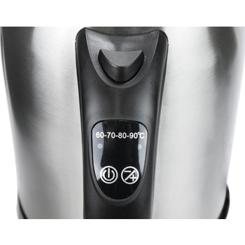 Ергономічна ручка електрочайника зроблена з термостійкого пластика чорного кольору. На ній розташована кнопка включення/виключення приладу, а також сенсорне управління термостатом. З наявністю термостата, з"являється можливість підігрівати воду до заданої температури (60°, 70°, 80° і 90°), а також підтримувати її упродовж необхідного часу. Для індикації роботи електрочайника, передбачено вбудоване світлодіодне підсвічування.