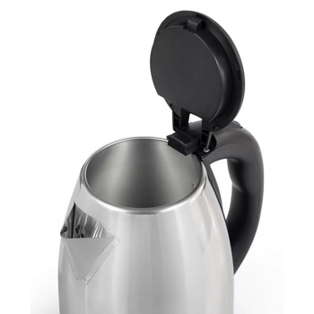 Електрочайник потужністю 1500 Вт об’ємом 1,8 л. Корпус виконаний з металу та пластику. Оснащений прихованим нагрівальним елементом, автоматичним вимкненням при закипанні та захистом від перегріву. Колір – нержавіюча сталь із чорним.