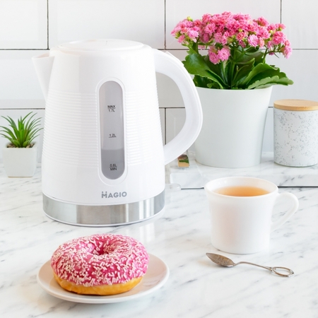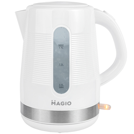 Чайник MG-100 поєднує в собі стильний дизайн із неперевершеною якістю й довговічністю. Ця унікальна модель об’ємом 1,7 л забезпечує швидке кипіння води для всієї сім’ї.