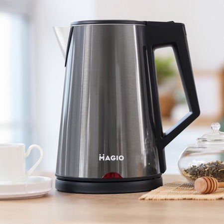 Електрочайник MAGIO об’ємом 1,7 л поєднує стильний дизайн з чудовою якістю і довговічністю.