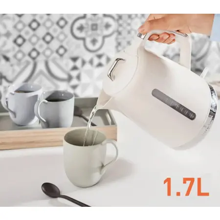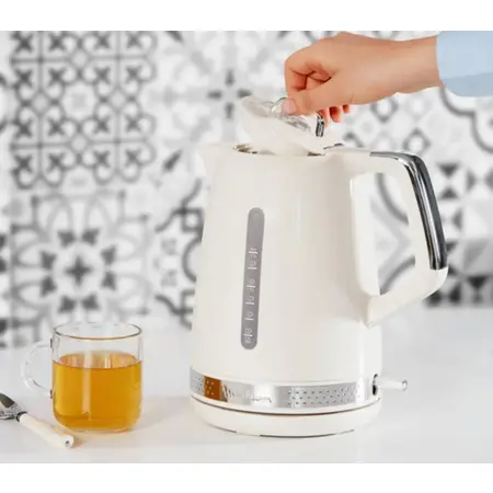Поворотна на 360° підставка робить користування чайником зручним, а відкидна кришка та вікно рівня води спрощують процес наповнення.