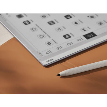 ONYX BOOX Go 10.3 має два сенсорних шари: над поверхнею екрана розташований ємнісний шар, завдяки якому ви можете перегортати сторінки електронних книг і масштабувати документи інтуїтивно зрозумілим натисканням двох пальців. Крім того, під панеллю E Ink розташований сенсорний шар Wacom. Завдяки цьому ви можете робити нотатки на полях і робити ескізи за допомогою спеціального стилуса, який йде в комплекті з пристроєм. Стилус розпізнає 4096 ступенів натискання і дозволяє малювати з надзвичайною точністю.