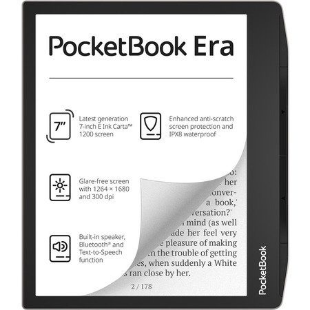 PocketBook Era оснащений найсучаснішим 7-дюймовим екраном E Ink Carta 1200 з роздільною здатністю 1264 x 1680 та 300 DPI. Завдяки новій технології, екран став ще приємнішим і комфортнішим у користуванні, адже контраст зображення підвищився на 15%, а час відгуку сенсорного екрана покращився на 20%. Окрім вражаючих оптичних характеристик, новий рідер може похвалитися функцією SMARTlight – адаптивним підсвічуванням для налаштування яскравості та колірної температури екрана.