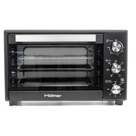 Електрична піч Holmer HEO-142CRL проста в догляді та експлуатації, встановлюється на будь-яку рівну поверхню. Працює від мережі 220 В, довжини шнура в 1 м цілком достатньо для зручного розміщення на кухні та комфортної роботи.
