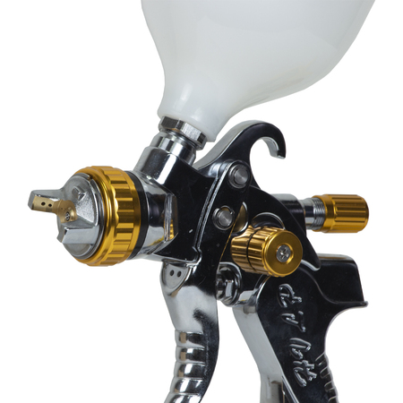 Система розпилення HVLP (High Volume, Low Pressure) - технологія високого обсягу при низькому тиску. Основна відмінність такої системи фарбопультів - це підвищена атомізація (розпорошення) лакофарбового матеріалу і стабільна форма факела при використанні. Конструкція даних фарборозпилювачів влаштована так, що завдяки спеціальній будові повітряних каналів пістолета розпилення ЛФМ відбувається при низькому тиску на виході. Фарборозпилювачі HVLP відрізняються зниженим туманоутворюванням і низькими втратами ЛФМ. Перенесення матеріалу на поверхню - понад 65%.