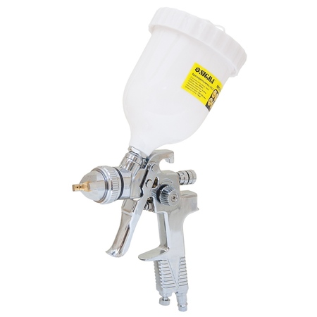 Професійний Фарборозпилювач Ø1.8мм (хром) з в/б (пласт) SIGMA (6812141) системи HVLP (великий обсяг, низький тиск) з верхньою подачею фарби. Дуже добре підходить для застосування в автомалярних майстерень, СТО, в меблевому виробництві, в будівництві і в інших галузях.