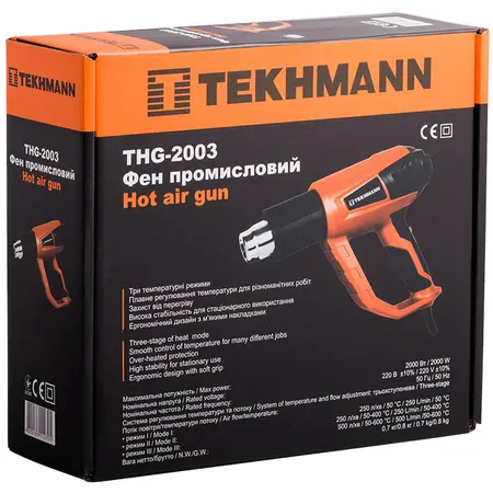 Промисловий фен Tekhmann THG-2003 (845281) - незамінний інструмент для швидкого та ефективного відведення вологи при виконанні будівельних, ремонтних та інших професійних робіт. Завдяки потужності 2000 Вт і великому обсязі повітря, цей фен забезпечить швидке висушування поверхонь безпошкодною шляхом. Компактний та зручний в користуванні, він підходить для використання як в середовищі виробництва, так і вдома. Змінна температура та швидкість повітря дозволяють точно регулювати процес сушіння в залежності від потреби. Висока якість виконання та надійність Tekhmann THG-2003 (845281) гарантують тривалий термін служби цього промислового фена.