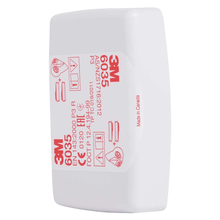 Протиаерозольний фільтр 3M™ 6035 Р3 захищає органи дихання від твердих та рідких аерозольних частинок. Підходить для використання з напівмасками серій 6000, 7500, 6500QL, а також з повнолицевими масками серії 6000. Легкий фільтр, що чинить низький опір диханню і легко встановлюється засобами захисту органів дихання.● Ключовий фактор ефективності досягається за рахунок якості фільтруючого матеріалу;● Використання з напівмасками при гранично допустимій концентрації домішок у повітрі до 50 ГДК;● Застосування з повнолицевими масками при гранично допустимій концентрації домішок у повітрі до 200 ГДК;● Забезпечення високоефективного захисту на рівні Р3 (типу НЕРА) з низьким опором дихання за рахунок великої площі фільтруючого елемента.;● Герметична та надійна система байонетного кріплення фільтра до повнолицьових масок та напівмасок;● Застосування у важких умовах та при підвищеній вологості (без зниження рівня захисту) за рахунок міцного пластикового корпусу, що запобігає попаданню твердих та рідких аерозольних частинок;● Збільшений термін зберігання.