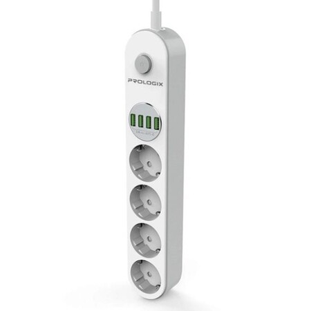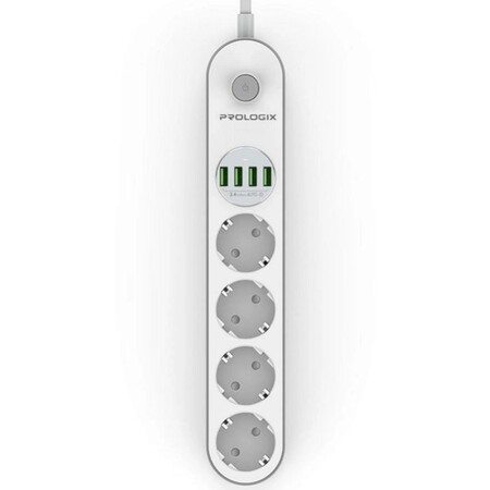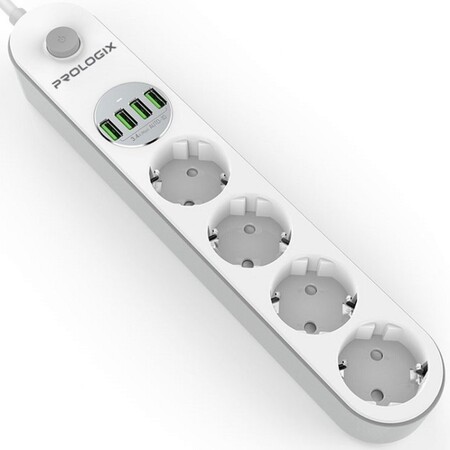 Бренд ProLogix пропонує мережевий фільтр PR-SE4432W. Він має 4 розетки та 4 порти USB. Виконаний у корпусі з вогнетривкого пластику, захищений від перенавантажень та коротких замикань. Також пристрій оснащено спеціальним отвором, що дозволяє повісити його на стіні.