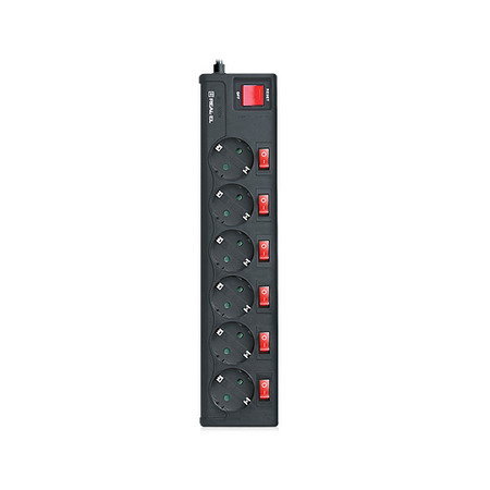 Мережевий фільтр живлення PowerCube RS-6 EXTRA 5m, black (EL122300003) дає змогу підключити до електричної мережі електроприлади і забезпечити їх захист від високовольтних імпульсів напруги і постійної фільтрації високочастотних перешкод. Особливості мережевого фільтра: загальний двополюсний вимикач з вбудованим запобіжником і світловою індикацією. Індивідуальні вимикачі для кожної розетки. 6 розеток із заземленням і захисними шторками. Відновлюваний запобіжник не вимагає заміни. Кабель з чистої міді без використання сплавів.