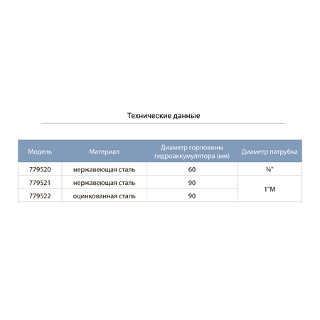 - Діаметр горловини гідроакумулятора (мм): 90;