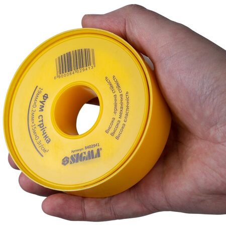 Фторопластова (ФУМ) стрічка 0.2мм×19мм×15м SIGMA (8402941) або фторопластовий ущільнювачий - це тонкий синтетичний ущільнювач, що випускається у вигляді стрічки, як правило, має напівпрозорий або матовий відтінок. Завдяки вмісту фтору, фум стрічка має досить високу механічну і термічну стійкість. Вона не старіє, не рветься при розтягуванні і не втрачає своїх властивостей під впливом агресивного хімічного середовища або високої температури. Застосовується для ущільнення трубопроводів загальнопромислового типу або для систем, що працюють агресивними хімічними середовищами.