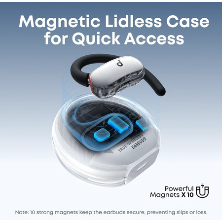 Anker SoundCore V40i — це бездротова гарнітура відкритого типу, що поєднує стильний дизайн, передові аудіотехнології та комфорт для щоденного використання. Створена для активних користувачів, які цінують якісний звук, зручність і можливість залишатися на зв’язку з оточенням, ця модель ідеально підходить для прослуховування музики, дзвінків, тренувань чи прогулянок у міському середовищі.