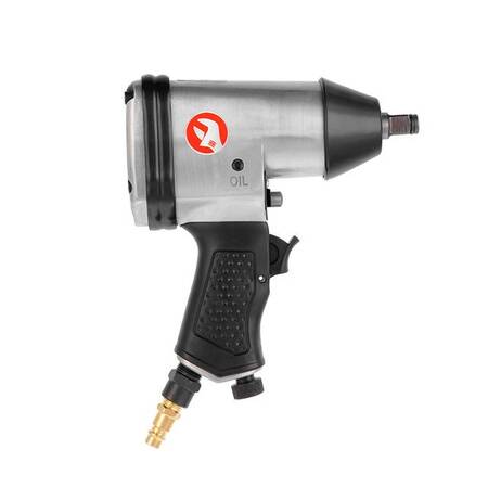 Завдяки пістолетній формі гайковерт зручно тримати у руці, має відмінне балансування. Прогумована ручка забезпечує надійну фіксацію інструменту в руці. Маслянка, яка йде в комплекті, заповнюється мастилом, монтується на інструмент та забезпечує стабільну роботу всіх механізмів усередині.