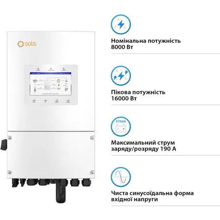 Загалом, інвертор Solis S6 8кВт є ідеальним варіантом для тих, хто шукає ефективний та надійний спосіб використання сонячної енергії для живлення свого будинку або бізнесу.
