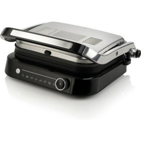 Контактний гриль можна відрегулювати відповідно до товщини їжі, що на ньому готується. Крім того, верхню пластину гриля можна повністю відкинути назад, створивши другу поверхню для смаження на зразок відкритого гриля.