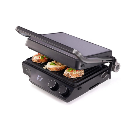 Ви можете вручну встановити температуру та час, щоб ваша їжа була ідеально готовою. За допомогою двох ручок керування ви можете регулювати рівень нагрівання, залежно від того, що готуєте: бекон, сендвіч, курку, рибу, овочі, гамбургер, ковбасу, а також 5 попередньо встановлених параметрів - від середнього просмаження до добре просмаженого для стейка. Цифровий екран покаже час і температуру. Приготування улюблених страв ідеально відповідатиме вашому смаку.