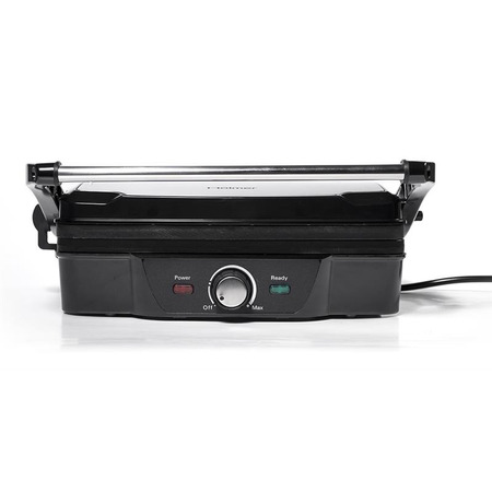 Модель HCG-160 оснащена механічним регулятором температури, розташованим на лицьовій панелі. Температура нагріву становить: 140-200°С. Кут відкриття конструкції – 105°/180°, що дуже зручно для використання. Розклавши прилад горизонтально, у вас з’явиться додаткова площа для приготування страв.