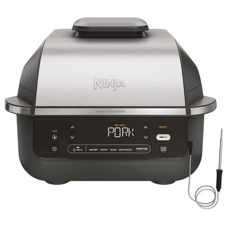 Один прилад – п’ять способів приготування. Гриль створює ідеальні смажені смужки на стейках та овочах. Запікання підходить для м’яса, овочів, риби та навіть випічки. Аерофритюр дозволяє готувати хрустку картоплю або крильця з мінімумом масла, тільки за допомогою циркуляції гарячого повітря. Обсмажування швидко готує продукти до золотистої скоринки. Дегідратація сушить фрукти, зелень чи м’ясо для домашніх снеків. Жодних зайвих приладів - гриль Ninja Foodi Air Grill & Air Fryer з Cooking probe EG351EU замінює цілу кухню. А ви заощаджуєте місце, час та електроенергію.
