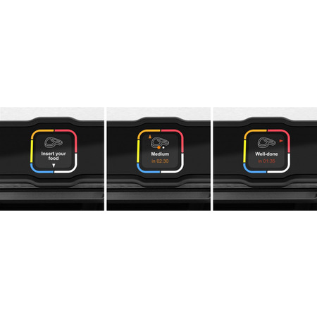 индикатор степени прожарки с touchpad сенсорной панелью, цифровой экран визуализации процесса приготовления, режим повторной прожарки для 2-ой порции еды