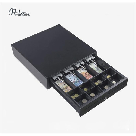Prologix PR-CD-4B8C може використовуватися автономно, а також підключатися до іншого торгівельного устаткування – касових апаратів, POS-терміналів, принтерів для друку чеків. Скринька дуже легко висувається завдяки прикріпленим пластиковим роликам, які розміщені в спеціальних направляючих.