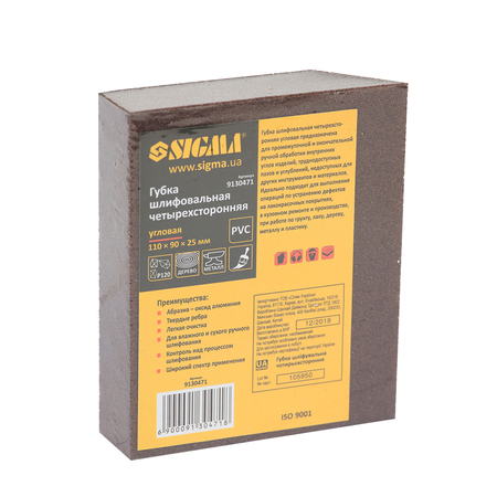 Губка шліфувальна чотиристороння кутова 110×90×25мм P120 SIGMA (9130471) призначена для проміжної та остаточної ручної обробки внутрішніх кутів виробів, важкодоступних пазів і поглиблень, недоступних для інших інструментів і матеріалів. Ідеально підходить для виконання операцій з усунення дефектів на лакофарбових покриттях, в кузовному ремонті і виробництві, при роботі по грунту, лаку, дерева, металу і пластику.