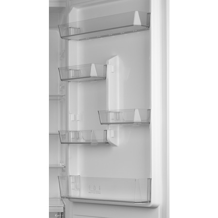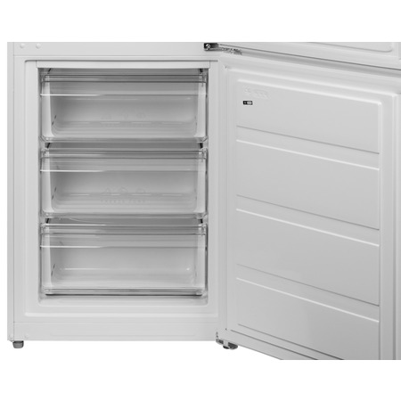 Верхня частина цього холодильнику Grifon — це відсік для свіжих продуктів місткістю 243 літрів. Має дві скляні полиці з можливістю модерації висоти, а також два пластикові ящики для зелені, фруктів та овочів. Дверцята облаштовані зручними навісними секціями — три великі. Тут зберігатимуться яйця, соуси, йогурти, молоко, напої чи варення. Морозильна камера розрахована на 76 літри, де в трьох окремих ящиках можна тривалий час зберігати напівфабрикати, фрукти/овочі, фарш, рибні продукти та інше.