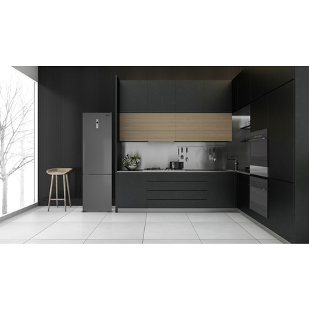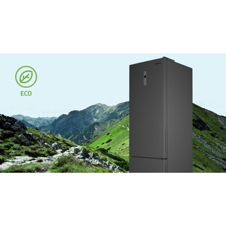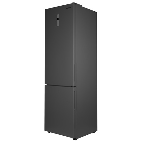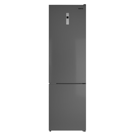 Графітна модель NFND-200X поділена на два відділення — холодильник та морозильна камера. Дверцята мають потаємні ручки, що не виступають за межі корпусу. Зверху на фронтальній частині розміщений сенсорний регулятор режимів роботи та індикатор температур. Ніжки з резиновими насадками не дряпають підлогу та можуть регулюватися за висотою, для максимально стабільного встановлення пристрою. Загальні габарити моделі — 595x635x2010 мм.
