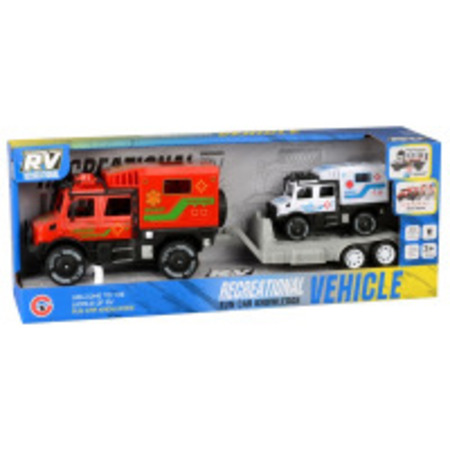 Інерційна карета швидкої допомоги з причепом та інерційним реанімобілем має світлові та звукові ефекти, в асортименті 2 види. Живлення: 3 батарейки типу AG13 (у комплекті). Розмір іграшки: 35.3х8х9.8 см. Упаковка відкрита коробка.