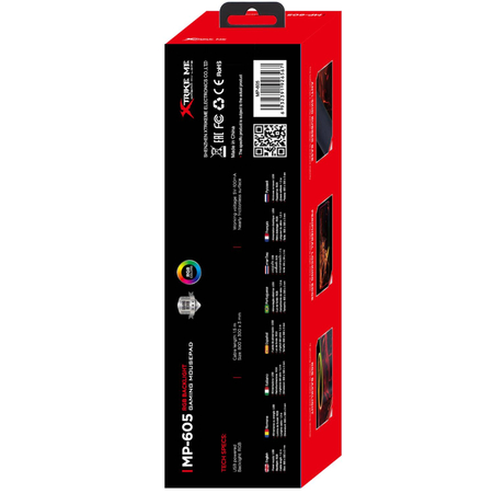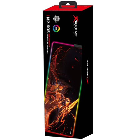 Ігрова поверхня великого розміру XTRIKE ME MP-605 підходить для оптичних та лазерних мишок з будь-якою чутливістю та типом сенсора. Ігровий характер килимка підкреслює сміливий динамічний дизайн. Ігрова поверхня виготовлена з міцної та гладкої тканини, що забезпечує високу швидкість переміщення миші та точне відстеження курсору. Краї ігрової поверхні оздоблені світлодіодною стрічкою із 13 режимами. Прогумована основа надійно фіксує ігрову поверхню XTRIKE ME MP-605 на столі та запобігає її зміщенню навіть під час найзапекліших онлайн змагань. Великий розмір дозволяє одночасно розмістити клавіатуру та мишку.