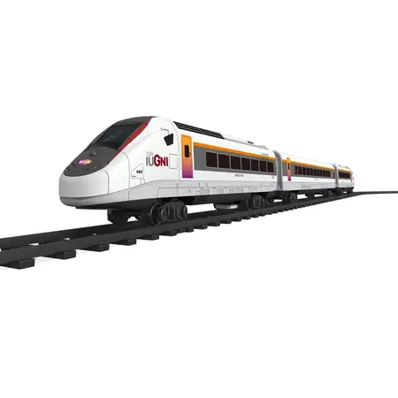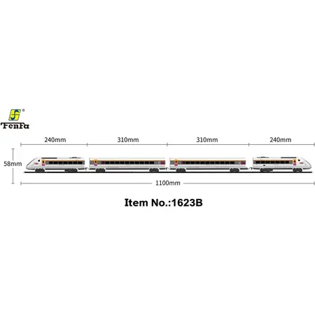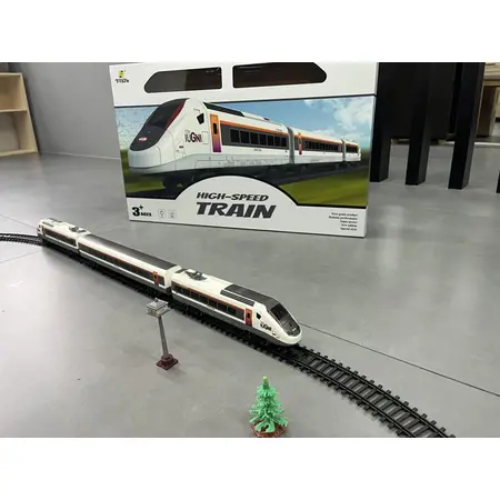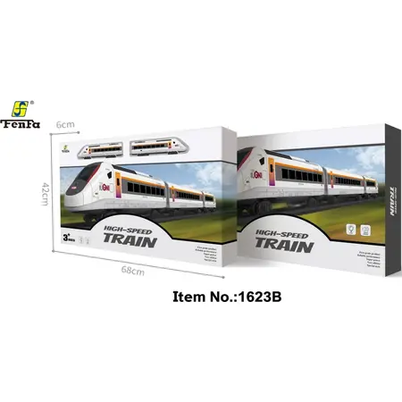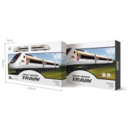 Набір дитячої швидкісної залізниці містить 2 локомотиви, 1 вагон, 12 кривих і 6 прямих рейок і аксесуари (2 дерева, 1 платформа). Рейки можна викласти різною конфігурацією. Один з локомотивів має світлові та звукові ефекти. Масштаб: 1:87. Рекомендований вік: від 3 років. Матеріал: пластик. Живлення: 2 х АА (до комплекту не входять). Упаковка: коробка 42*68*6см.