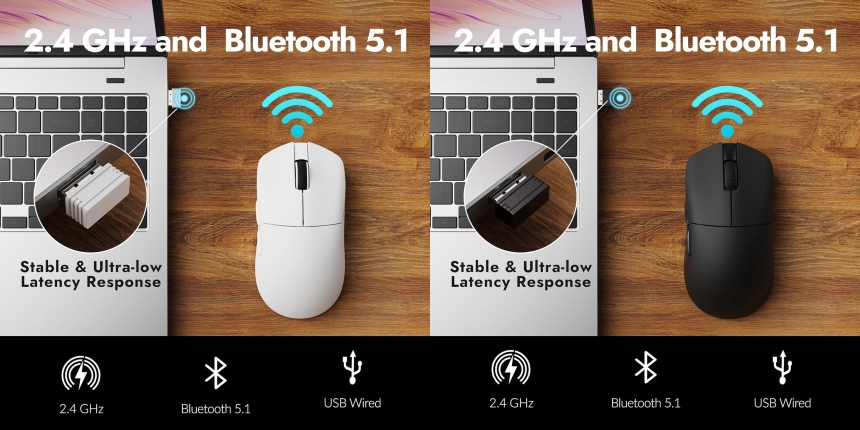 - Універсальне підключення: 2,4 ГГц, Bluetooth 5.1, дротове USB-A/USB-C.