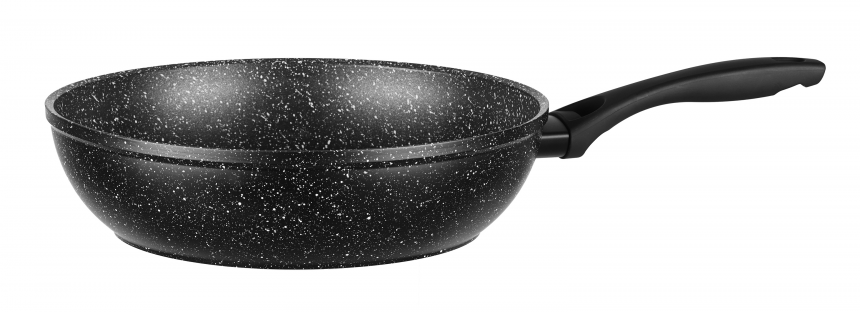 Ці алюмінієві глибокі сковороди чорного кольору з мармуровим протипригарним покриттям стануть в пригоді для тушкованих чи смажених страв. Бакелітове руків’я з покриттям Soft-touch забезпечує зручний хват і комфорт під час приготування.