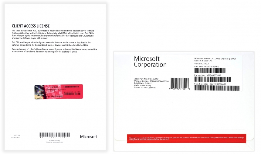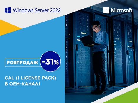 Повідомляємо про завершення постачання та распродаж OEM-продуктів у варіанті пакетів на одну ліцензію клієнтського доступу (CAL) до Microsoft Windows Server 2022 Standard / Datacenter для користувачів (User CAL) та пристроїв (Device CAL).